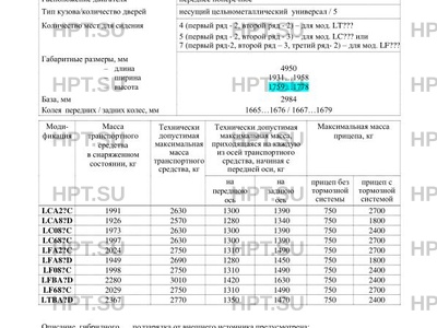 | Тип ТС | Транспортные средства не предназначены для коммерческих перевозок пассажиров. |