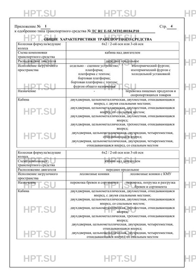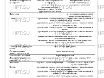 | Исполнение загрузочного пространства | седельно - сцепное устройство; платформа; платформа с тентом; бортовая платформа; бортовая платформа с тентом; фургон общего назначения изотермический фургон; изотермический фургон с холодильной установкой лесовозные коники лесовозные коники с КМУ платформа для перевозки контейнеров типа 1B, 1BB, 1BX, 1C, 1СC, 1CX, 1DD, 1D, 1DX платформа для перевозки сменных кузовов самосвальная платформа с задним откидным бортом, с задней разгрузкой; самосвальная платформа без заднего откидного борта, с задней разгрузкой; самосвальная платформа с боковой разгрузкой; самосвальная платформа с задним откидным бортом, с задней и боковой разгрузкой; самосвальная платформа с задним откидным бортом, с трехсторонней разгрузкой седельно - сцепное устройство самосвальная платформа с задним откидным бортом, с задней разгрузкой; самосвальная платформа без заднего откидного борта, с задней седельно - сцепное устройство разгрузкой; самосвальная платформа с боковой разгрузкой; самосвальная платформа с задним откидным бортом, с задней и боковой разгрузкой; самосвальная платформа с задним откидным бортом, с трехсторонней разгрузкой |