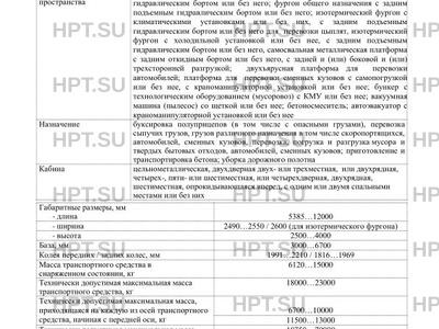 | Дополнительная информация | В случае фактического превышения параметров, указанных в приложении № 5 к техническому регламенту Таможенного союза «О безопасности колесных транспортных средств», для передвижения транспортных средств по территории государств — членов Таможенного союза необходимо оформление специального разрешения. Транспортные средства с двигателями типа D11K, D13K, D16K, G13C соответствуют европейским экологическим нормам Евро-6. Обозначение типа двигателя внутреннего сгорания на блоке цилиндров: Тип двигателя Обозначение на блоке цилиндров D11C, D11K D11 D13C, D13K, G13C D13 D16G, D16K D16 |