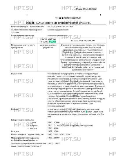 | Тип ТС | Транспортные средства модификаций Р4X200 ADR (EX/II, EX/III, FL, OX, AT); R4X200 ADR (EX/II, EX/III, FL, OX, AT); G4X200 ADR (EX/II, EX/III, FL, OX, AT); Р4X400 ADR (EX/II, EX/III, FL, OX, AT); R4X400 ADR (EX/II, EX/III, FL, OX, AT); G4X400 ADR (EX/II, EX/III, FL, OX, AT) могут использоваться для перевозки опасных грузов и для буксировки полуприцепов, предназначенных для перевозки опасных грузов. Транспортные средства модификаций S4X200 ADR (EX/II, EX/III, FL, OX, AT); S4X400 ADR (EX/II, EX/III, FL, OX, AT) могут использоваться для буксировки полуприцепов, предназначенных для перевозки опасных грузов. Транспортные средства с двигателями OC09 101, OC09 102, OC09 104, OC09 105, OC09 106, OC13 101, DC13 115, DC13 124, DC13 125, DC13 141, DC13 147, DC13 148, DC13 155, DC16 101, DC16 102, DC16 103, DC16 105, DC16 106, DC16 107 соответствуют европейским экологическим нормам Евро-6. В случае превышения параметров, указанных в Приложении № 5 к Техническому регламенту Таможенного союза "О безопасности колесных транспортных средств", для передвижения транспортных средств по территории государств – членов Таможенного союза необходимо оформление специального разрешения. |