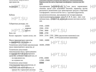 Тип ТС Транспортные средства модификаций Р4X200 ADR (EX/II, EX/III, FL, OX, AT); G4X200 ADR (EX/II, EX/III, FL, OX, AT); R4X200 ADR (EX/II, EX/III, FL, OX, AT); S4X200 ADR (EX/II, EX/III, FL, OX, AT); Р4X400 ADR (EX/II, EX/III, FL, OX, AT); G4X400 ADR (EX/II, EX/III, FL, OX, AT); R4X400 ADR (EX/II, EX/III, FL, OX, AT); S4X400 ADR (EX/II, EX/III, FL, OX, AT) могут использоваться для буксировки полуприцепов, предназначенных для перевозки опасных грузов. Транспортные средства с двигателями OC09 104, OC09 105, OC13 101, DC13 115, DC13 141, DC13 147, DC13 148, DC13 155, DC16 101, DC16 102, DC16 103, DC16 105, DC16 106, DC16 107 соответствуют европейским экологическим нормам Евро-6. В случае превышения параметров, указанных в Приложении № 5 к техническому регламенту Таможенного союза "О безопасности колесных транспортных средств", для передвижения транспортных средств по территории государств – членов Таможенного союза необходимо оформление специального разрешения.