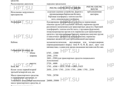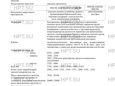 | Исполнение загрузочного пространства | седельно-сцепное устройство, фургон с грузоподъемным бортом или безнего, бортовая платформа с тентом или без него, самосвальная платформа трхсекционная цистерна |