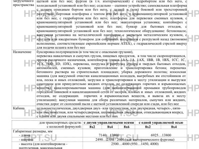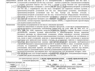 | Оборудование ТС | устройство ограничения максимальной скорости (функцию устройства ограничения максимальной скорости выполняет электронный блок управления), устройство вызова экстренных оперативных служб модели FORT-112ЕG, по заказу: холодильник с морозильной камерой или без нее, кондиционер, климат-контроль, аудиосистема, микроволновая печь, спутниковая система навигации с дисплеем и клавиатурой, круиз-контроль, адаптивный круиз-контроль, специальные предупреждающие огни автожелтого цвета, алкозамок, кофеварка, телевизор, иммобилайзер, система помощи при перестроении, датчик дождя, автономный отопитель, стояночная климатическая установка, система экстренной помощи на дороге, встроенная телефонная гарнитура, пульт дистанционного управления оборудованием автомобиля, сушилка для одежды, видеокамера внешнего обзора (от одной до четырех), штатная емкость для воды, тахограф, подушка безопасности водителя, внутренний солнцезащитный козырек, навесная подметально вакуумно-очистная установка, установленная спереди или сзади (использование навесной подметальной вакуумно-очистной установки не допускается на дорогах общего пользования), внешний солнцезащитный козырек, фонари освещения рабочей зоны (разрешенные на дорогах общего пользования), фары освещения рабочей зоны (не предназначенные к использованию на дорогах общего пользования), система электронного контроля устойчивости (ESC), сцепное устройство, коробка отбора мощности, лебедка, система предупреждения о выходе из полосы движения, гидравлический насос по заказу: устройство звуковой сигнализации о движении задним ходом, система помощи при трогании на уклоне, противобуксовочная система, дополнительное сцепное устройство в переднем свесе, топливный бак для автономного отопителя, инструментальный ящик, цепи противоскольжения, система пожаротушения моторного отсека, дуги для крепления оборудования на крыше, дополнительный компрессор, противоугонная сигнализация, отсеки для хранения вещей внешнего и скрытого крепления, устройства крепления переднего навесного оборудования, запираемые отсеки хранения вещей (сейф), подогреваемый чехол для АКБ, защитная сетка от камней, центральный замок, опережающая система экстренного торможения, верхний обтекатель, боковые обтекатели, предпусковой подогреватель |