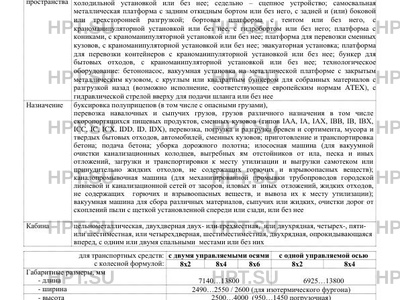 | Дополнительная информация | В случае фактического превышения параметров, указанных в приложении № 5 к техническому регламенту Таможенного союза «О безопасности колесных транспортных средств», для передвижения транспортных средств по территории государств — членов Таможенного союза необходимо оформление специального разрешения. Транспортные средства с двигателями типа D11K, D13K, D16K соответствуют европейским экологическим нормам Евро-6. Обозначение двигателя внутреннего сгорания на блоке цилиндров: тип двигателя Обозначение на блоке цилиндров D11C, D11K D11 D13C, D13K D13 D16G, D16K D16 |