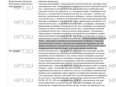 Назначение автобетоносмеситель с функцией доставки бетонного раствора или без; илососная машина (для вакуумной очистки канализационных колодцев, выгребных ям отстойников от ила, песка и иных отложений, загрузки и транспортировки к месту утилизации и выгрузки самотеком или принудительно жидких отходов, не содержащих горючих и взрывоопасных веществ); каналопромывочная машина (для механизированной промывки трубопроводов городской ливневой и канализационной сетей от засоров, иловых и иных отложений, жидких отходов, не содержащих горючих и взрывоопасных веществ, и вывоза их к месту утилизации); коммунальная машина (для содержания дорог); фургон для перевозки пищевых продуктов и различных грузов; седельный тягач для буксирования полуприцепов (в том числе с опасными грузами