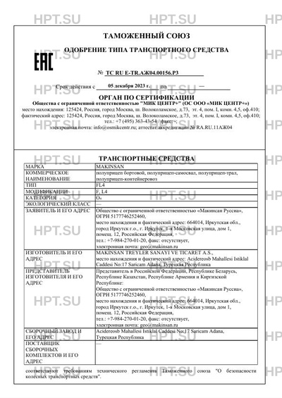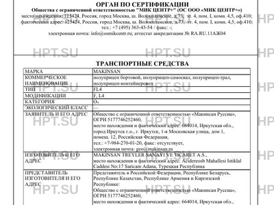 | Предприятие-изготовитель | MAKINSAN TREYLER SANAYI VE TICARET A.S., место нахождения и фактический адрес: Acidereosb Mahallesi Istiklal Caddesi No:17 Saricam Adana, Турецкая Республика |