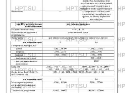 | Назначение | для перевозки строительной техники и крупногабаритных грузов, по заказу: перевозка контейнеров для ТС с коммерческим наименованием полуприцеп-самосвал для перевозки насыпных (в т.ч. зерно) и навалочных грузов |