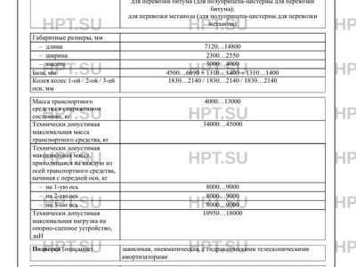 | Назначение | для перевозки нефтепродуктов (для полуприцепа-цистерны для перевозки светлых нефтепродуктов); для перевозки битума (для полуприцепа-цистерны для перевозки битума); для перевозки метанола (для полуприцепа-цистерны для перевозки метанола) |