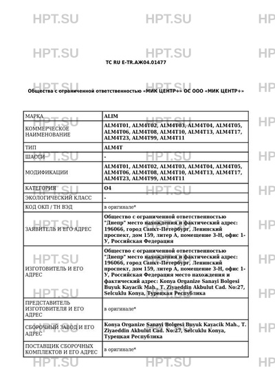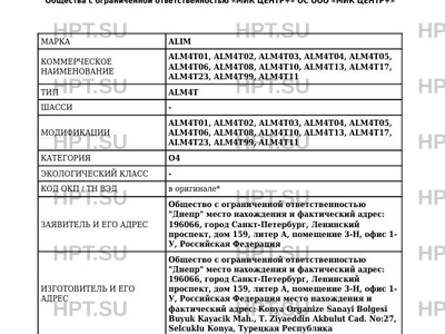 | Марка ТС | ALIM |
