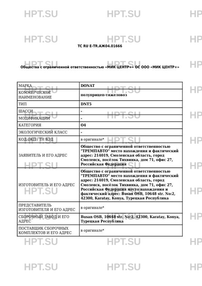 | Марка ТС | DONAT |