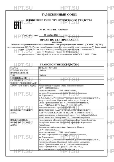 | Номер документа | ТС RU Е-TR.ГА06.02094 |