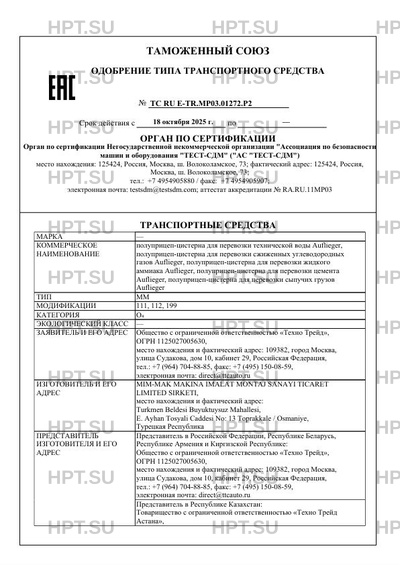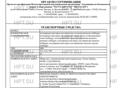 | Коммерческое наименование | полуприцеп-цистерна для перевозки технической воды Aufliеger, полуприцеп-цистер… |
