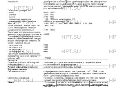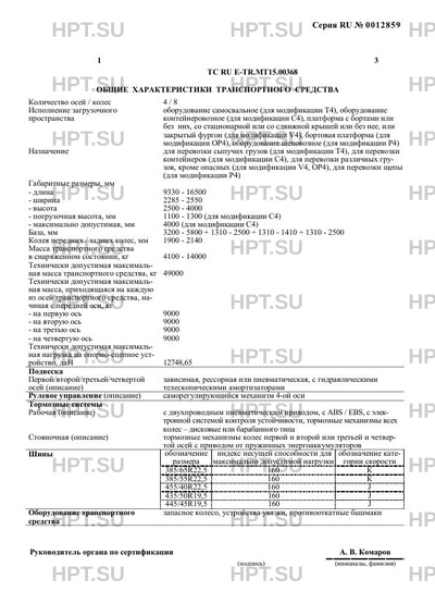 | Тип ТС | Транспортное средство не предназначено для перевозки опасных грузов. В случае фактического превышения значений параметров, указанных в приложении № 5 к техническому регламенту Таможенного союза «О безопасности колесных транспортных средств» (ТР ТС 018/2011), для передвижения транспортных средств по территории государств – членов Таможенного союза необходимо оформление специального разрешения. |
