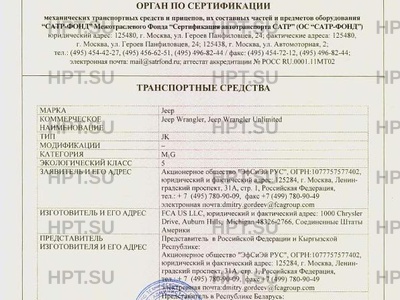 Коммерческое наименование Jeep Wrangler, Jeep Wrangler Unlimited JK