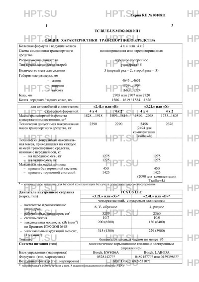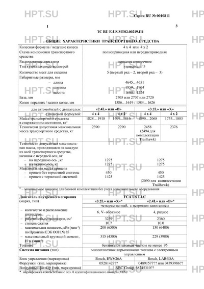 ДВС FCA US LLC «3.2L» или «Х»* «2.4L» или «В»*