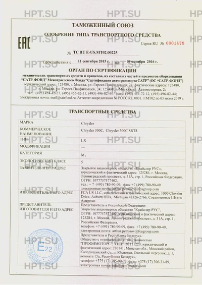 | Коммерческое наименование | Сhrysler 300C, Сhrysler 300C SRT8 LX |