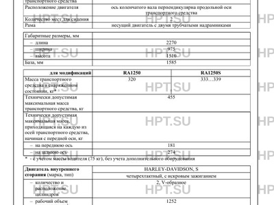 Оборудование ТС составное двухместное сиденье по заказу: дуги безопасности; цельное двухместное сиденье; заднее багажное отделение; боковые подвесные багажные отделения; подвесные боковые багажники; задний багажник; противоугонная система; ветровое стекло; защитные щитки рукояток руля; подогрев ручек руля; система мониторинга давления воздуха в шинах; демпфер рулевого управления