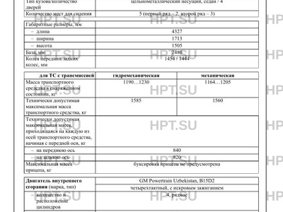 | ДВС | GM Powertrain Uzbekistan, B15D2 четырехтактный, с искровым зажиганием |