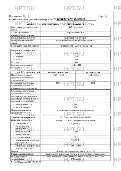| Тип ТС | Транспортные средства не предназначены для коммерческой перевозки пассажиров. Марка Коммерческое наименование Chevrolet Nexia RAVON Nexia R3 |