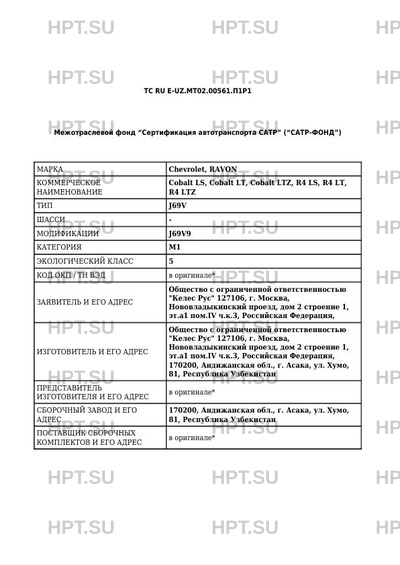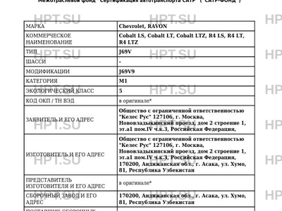 Тип ТС Транспортные средства не предназначены для коммерческой перевозки пассажиров. Марка Коммерческое наименование Chevrolet Cobalt LS, Cobalt LT, Cobalt LTZ RAVON R4 LS, R4 LT, R4 LTZ