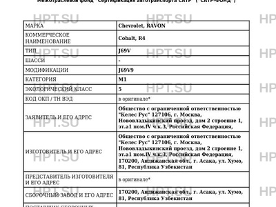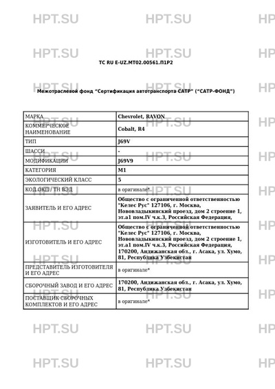 | Тип ТС | Транспортные средства не предназначены для коммерческой перевозки пассажиров. Марка Коммерческое наименование Chevrolet Cobalt RAVON R4 |