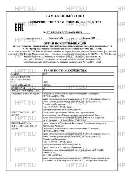 ТС RU E-UZ.МТ25.00070.П1Р1