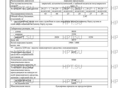 | Оборудование ТС | устройство вызова экстренных оперативных служб модели FORT- 112EG; установка спутниковой навигации ГЛОНАСС или ГЛОНАСС/GPS; подготовка под установку технического средства контроля над соблюдением водителями режимов движения, труда и отдыха; кондиционер или система климат-контроля (хладагент R134a); по заказу: холодильник (хладагент R134a); охладитель воды (хладагент R134a); биотуалет; аудио-, видеосистема; тахограф; транспортное громкоговорящее устройство; электронная система информирования пассажиров; информационно-цифровые табло; автомобильная УКВ-радиостанция; система видеонаблюдения: видеорегистратор, видеокамера контроля работы водителя, видеокамера переднего и заднего вида, посадочных площадок, салонные видеокамеры; датчик - извещатель задымления и температуры; датчики температуры воздуха внутри салона и наружного воздуха с выводом информации на щиток приборов водителя и/или на внутрисалонное табло |