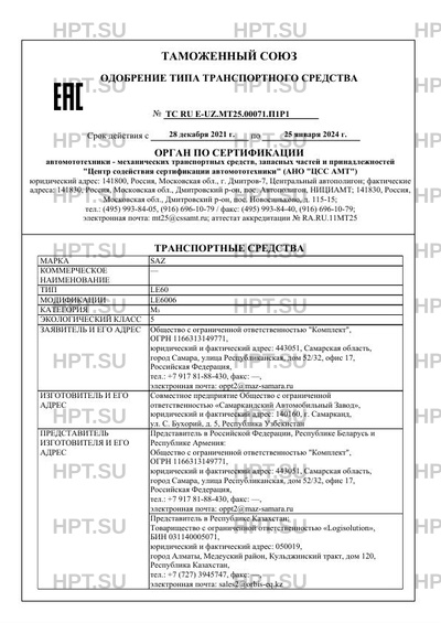 | Марка ТС | SAZ |
