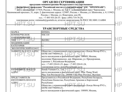 | Марка ТС | HONDA |