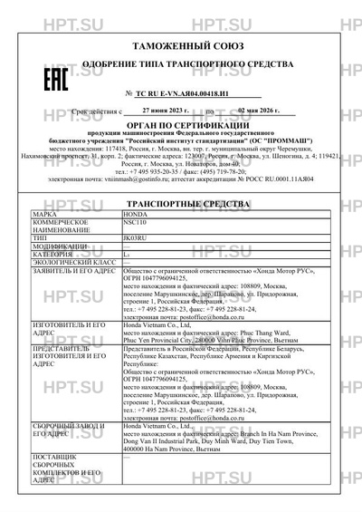 ТС RU E-VN.АЯ04.00418.И1