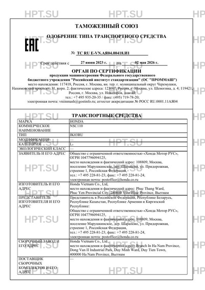 | Заявитель | «Хонда Мотор РУС» |