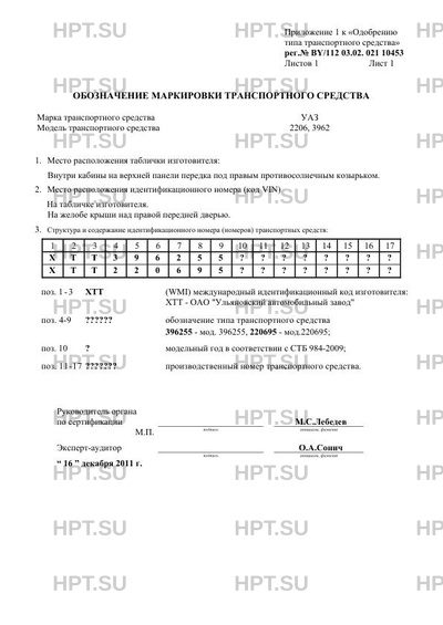 | Код VIN | XTT220695????????, XTT396255???????? |