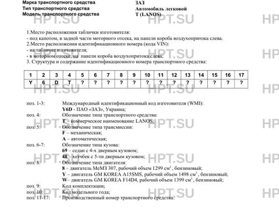 | Код VIN | Y6DT????????????? |