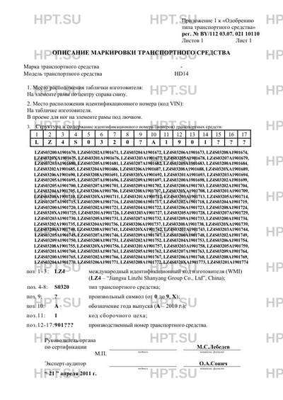 | Количество единиц | партия; в количестве 105 (сто пять) шт. с идентификационными номерами LZ4S0320?A1901670 – LZ4S0320?A1901774 |