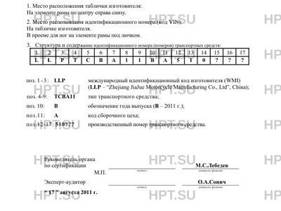 | Количество единиц | партия; в количестве 75 (семьдесят пять) шт. с идентификационными номерами LLPTCBA11BA510676 – LLPTCBA11BA510750 |