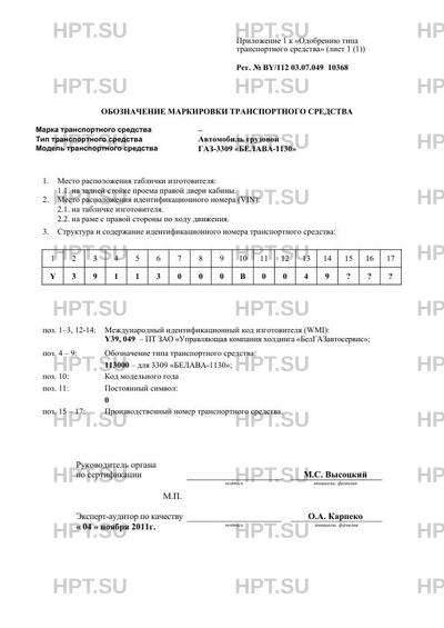 | Количество единиц | партия; 50 шт., коды VIN: Y39113000?0049001-Y39113000?0049050, по ТУ 100123046.001-2009 |
