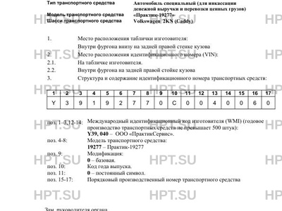 | Коммерческое наименование | Автомобиль специальный (для инкассации денежной выручки и перевозки ценных грузов); -; «Практик-19277» |