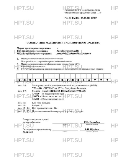 | Тип ТС | АО136020(класс В), АО136050(класс В), АО136060(класс А) |