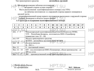 | Коммерческое наименование | автомобиль грузовой; -; N33054 на базе Volvo FL (4x2) |