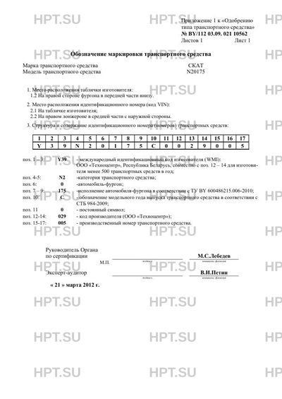 | Количество единиц | единичное изделие; идентификационный номер Y39N20175С0029005 |