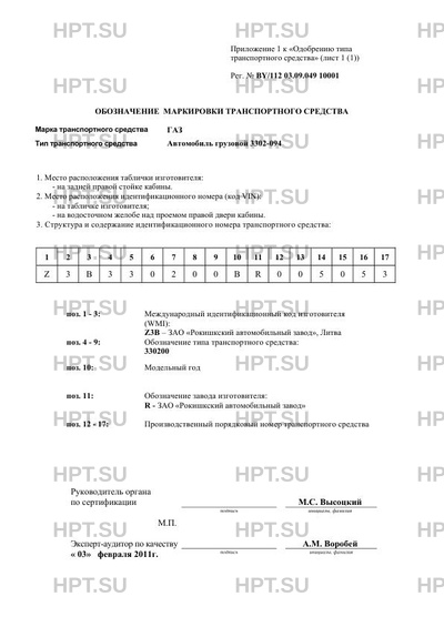 | Коммерческое наименование | автомобиль грузовой; -; 3302-094 |