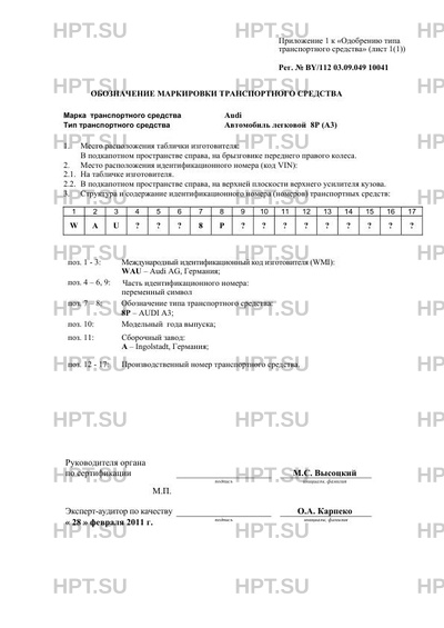 | Тип ТС | Автомобиль легковой 8P (A3) Автомобиль легковой 8P (Audi A3) |