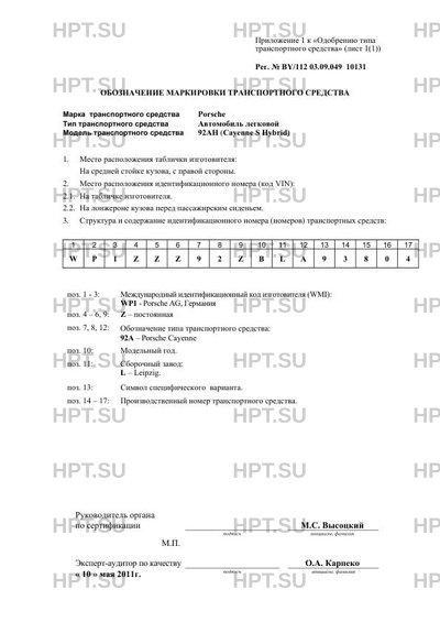 | Коммерческое наименование | Автомобиль легковой; -; 92АH (Cayenne S Hybrid) |