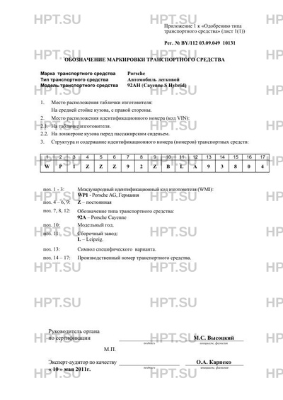 | Тип ТС | 92АH (Cayenne S Hybrid) |