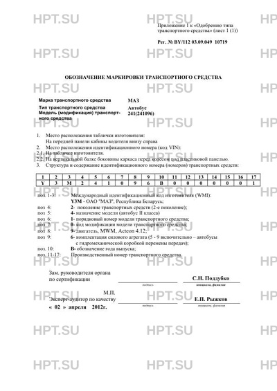 | Тип ТС | Модель (модификация) транспортного средства Автобус 241(241096) Автобус Модель … |