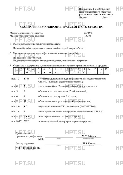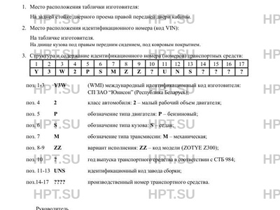 | Код VIN | Y3W2PSMZZ?UNS???? |