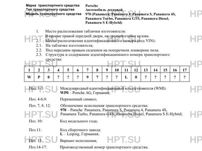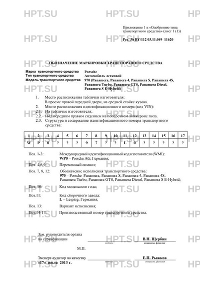| Коммерческое наименование | Автомобиль легковой; -; 970 (Panamera, Panamera 4, Panamera S, Panamera 4S, Panamera Turbo, Panamera GTS, Panamera Diesel, Panamera S Е-Hybrid) |