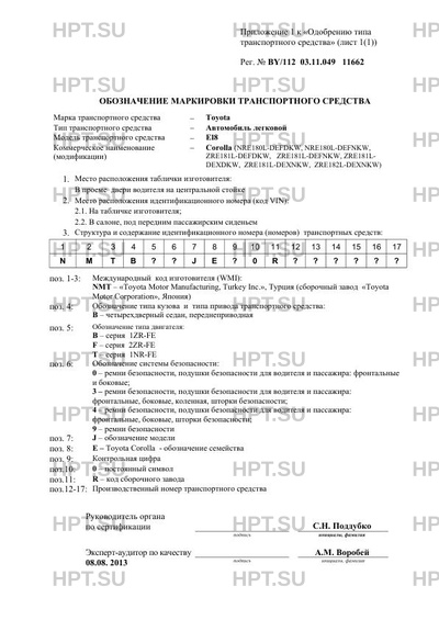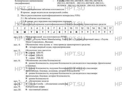 Коммерческое наименование | Автомобиль легковой; -; E18 (COROLLA) |