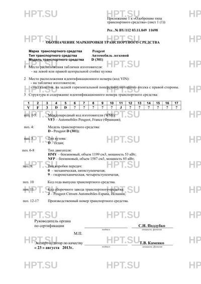 | Код VIN | VF3DD???????????? |