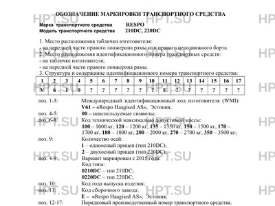 | Марка ТС | RESPO |